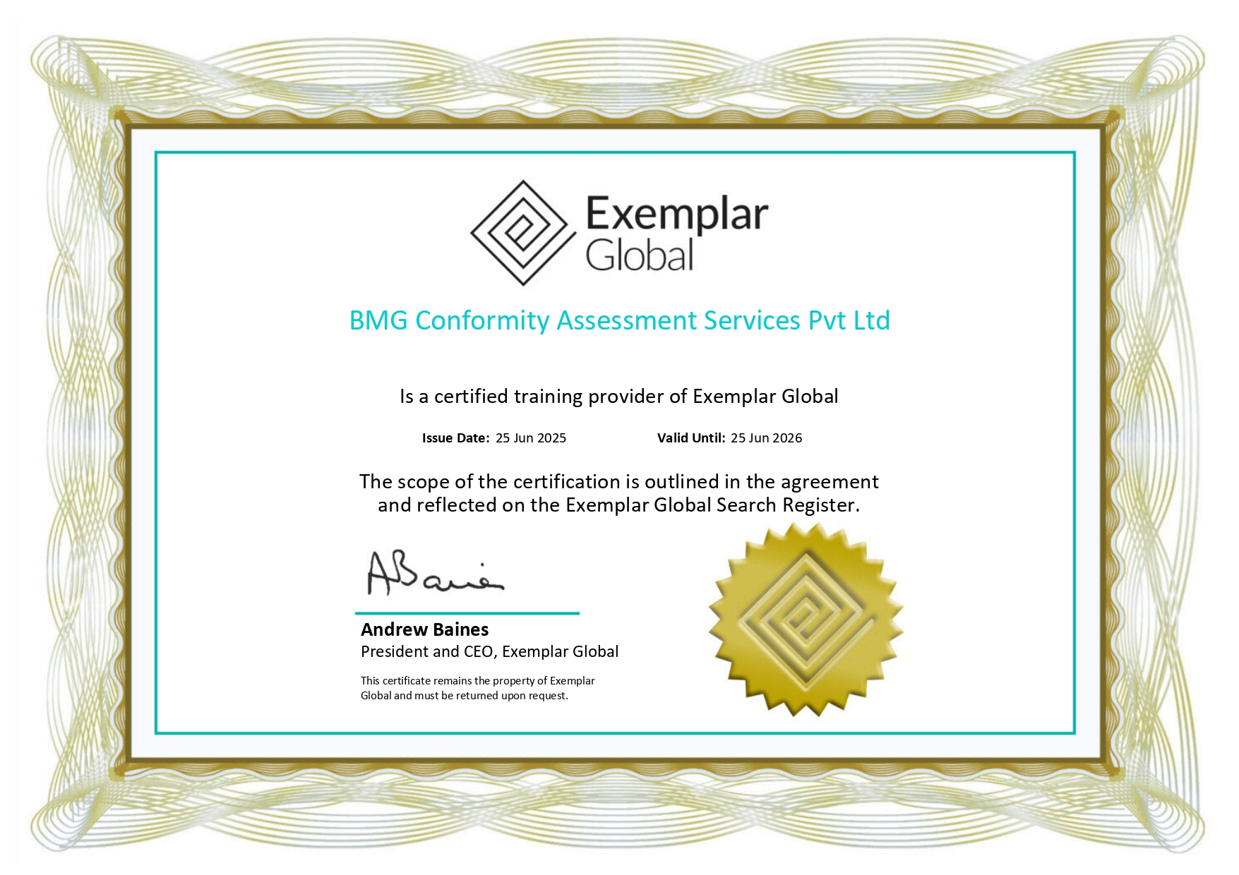 BMG is Accredited as a training provider with Exempler Global.